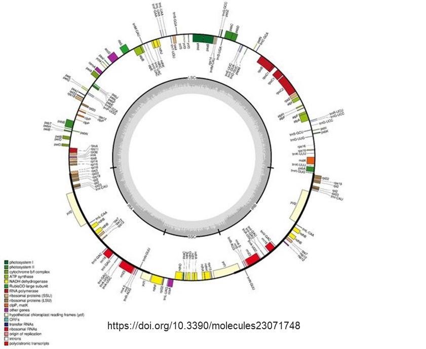 Chloroplast genome of plant or eukaryotic algae contain approximately 130 genes. They are involved in photosynthesis, fatty acid synthesis, immune response in plants and important metabolic pathways. Chloroplast genome harbors considerable variations inter species and intra species. Genomic examination of cpDNA (chloroplast DNA) provides valuable information on phylogeny and evolutionary adaptations. Short fragment (single end or paired end) sequencing by Illumina or Long read sequencing by PacBio are high throughput sequencing methods available for in-depth sequence analysis of cpDNA.